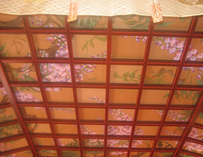 春日神社(大分市)本殿内部に2010年、施された色鮮やかな天井画。